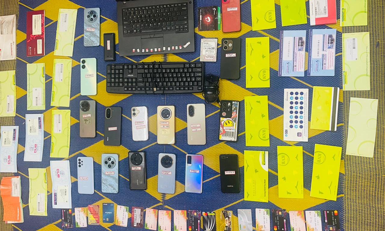 The police have seized 18 cellphones, one laptop computer, 12 SIM playing cards, 15 cheque books, 12 financial institution passbooks, and 18 debit playing cards from the accused. Officers mentioned additional investigation is on.